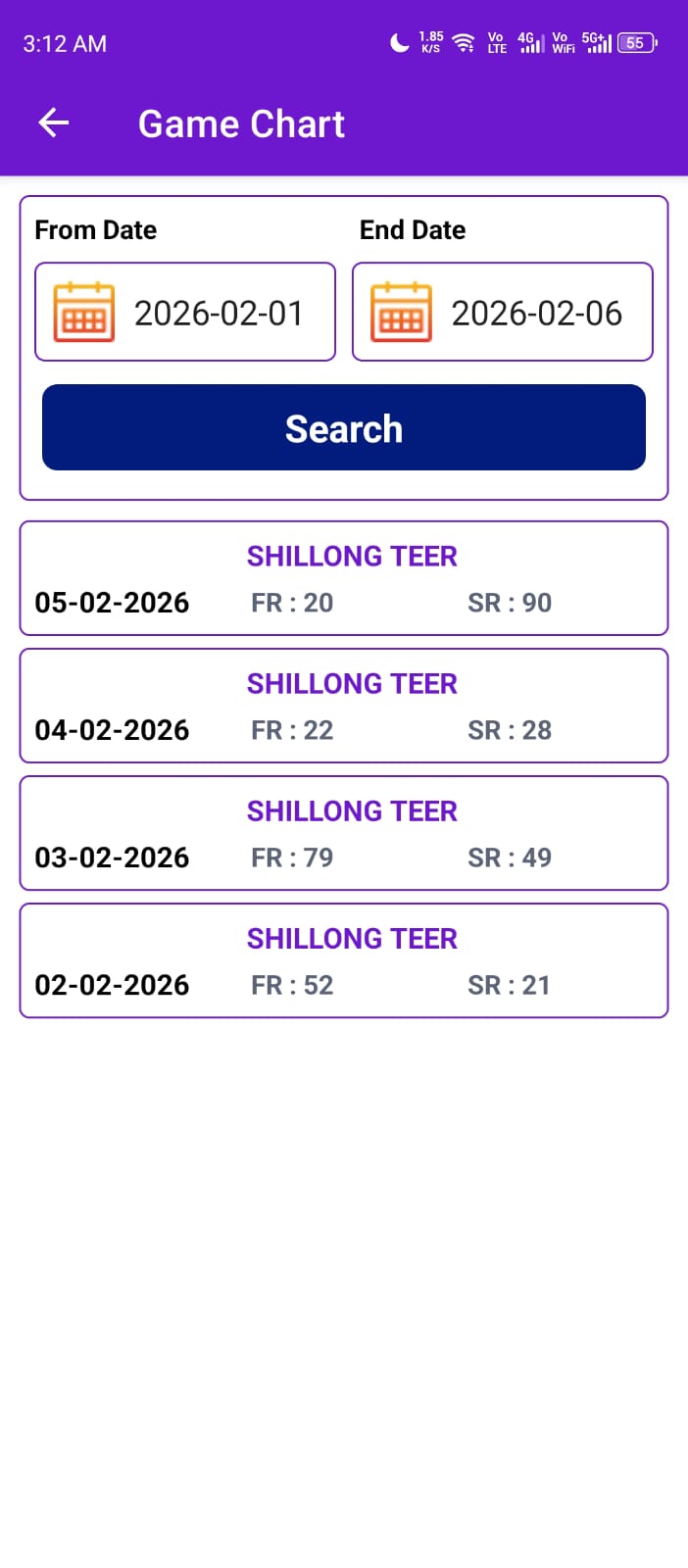 New Shillong Teer FR SR 73 - 73 04:30 pm - 05:30 pm |